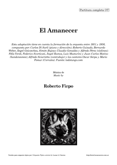 El Amanecer – Orquesta Típica Carlos Di Sarli 29 abril, 2024 by Lucas Alcides Caceres tangoargentina, arreglos, carlos di sarli, desgrabaciones, firpo, orquesta típica, partituras de tango gratis, partituras gratis, tango, transcripciones To view this content, you must be a member of Lucas's Patreon at $1 or more Unlock with PatreonAlready a qualifying Patreon member? Refresh to access this content.